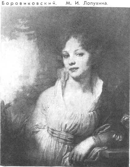 Она давно прошла, и нет уже тех глазИ той улыбки нет, что молча выражали,Страданье — тень любви, и мысли — тень печали,Но красоту ее Боровиковский спас.(Я. Полонский. "К портрету М. И. Лопухиной")