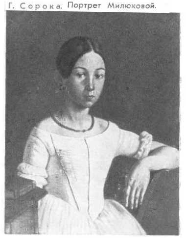 Учение у Венецианова окрылило Сороку. Но воспарение кончилось стычкой с помещиком, и Сороку наказали. Встревоженный Венецианов осторожно заступается: "Я грешников кающихся люблю и на них надеюсь…" Венецианов кривил душой — знал, что Сорока "грешник" нераскаивающийся… Под влиянием известной картины Венецианова крепостной художник написал и свое "Гумно". Учитель хвалил за непосредственность восприятия, пластику, верное ощущение светотени. Нас сегодня очень трогает и та добрая симпатия, с которой изображены крестьянские девушки на полотне… Сорока рисует портреты дворовых.