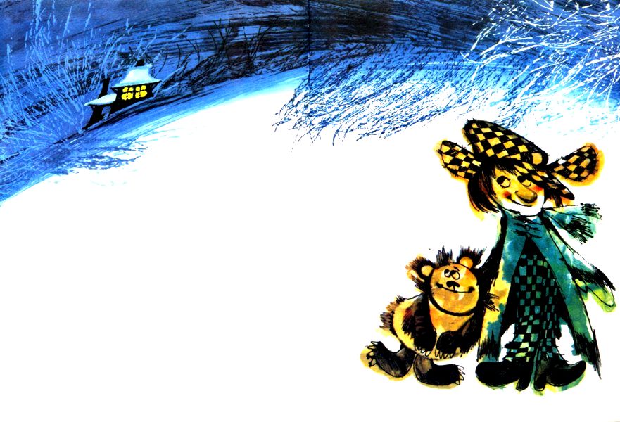 — У тебя тут тепло, хозяин. Пусти переночевать. Медвежонок, шельма, в лес хочет, да у меня там уши замёрзнут.