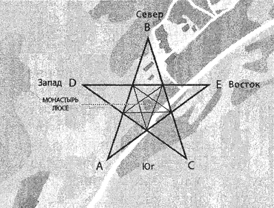 Одной из подсказок в замысловатом кроссворде Снорри было выражение: «Восток встречает север». Мне приходит в голову, что это, возможно, описание того, где встречаются идущие на восток и на север линии пентаграммы. Но только указание это весьма расплывчатое, потому что местом встречи востока и севера может быть несколько точек. Поэтому нам придется пройтись по всем линиям пентаграммы и посмотреть, не прояснится ли что-нибудь на местности.