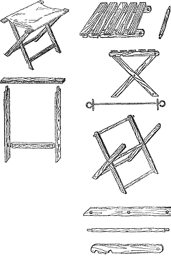 Складной стул. Складные стулья удобны для сиденья, легкие в переноске, просты в изготовлении. Они бывают с мягким матерчатым сидением или с жестким деревянным. Делать складные стулья можно из любых пород дерева. Однако предпочтение отдается твердым породам: березе, буку, клену, дубу, ясеню. Древесина должна быть, конечно, сухая.
