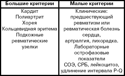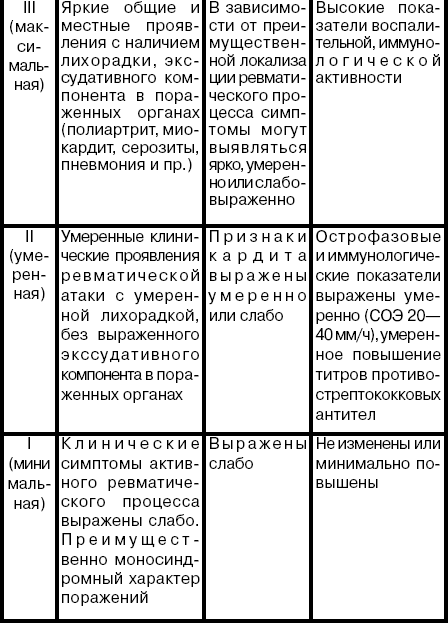 При постепенном начале ревматизма имеет значение предложенная А. И. Нестеровым в 1973 г. (см. табл. 1) синдромная диагностика: клинико-эпидемиологический синдром; кардиоваскулярный синдром (см. табл. 2).