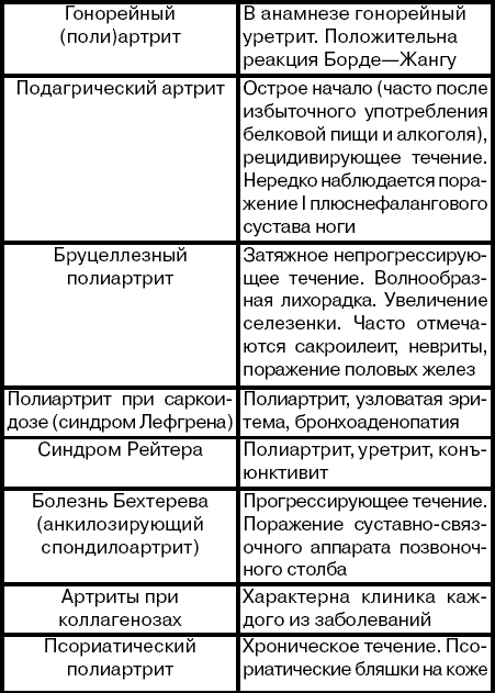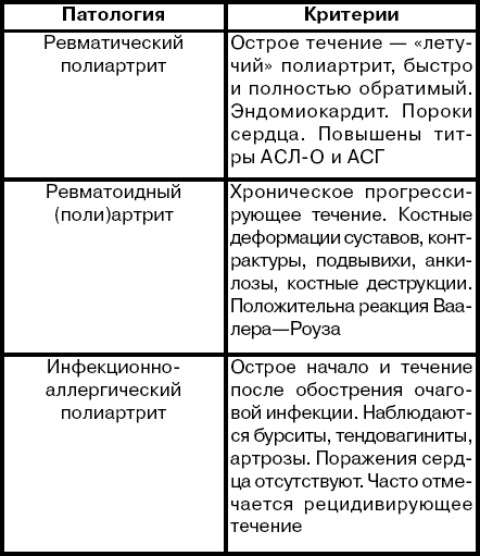 Ревматический полиартрит необходимо дифференцировать с неревматическими (см. табл.).