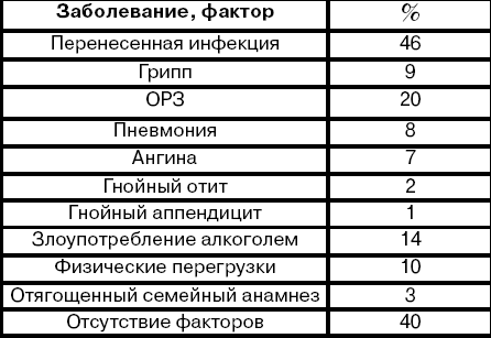 Заболевания и факторы, предшествовавшие развитию ДКМП, описаны в приведенной ниже таблице (см. табл.).