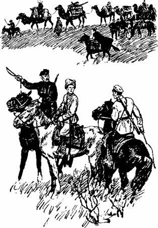 У взвода разведки хлопот полон рот. Головной дозор уходит, далеко вперёд, чтобы первым заметить противника. Боковые дозоры скачут по гребням барханов — им нужно успеть предупредить удар с флангов. Караван останавливается на ночь, бойцы поят животных, варят вкусную кашу на кострах, расстилают кошмы под звёздами, чтобы увидеть прекрасные сны. А разведчики снова седлают коней и уходят в ночь…