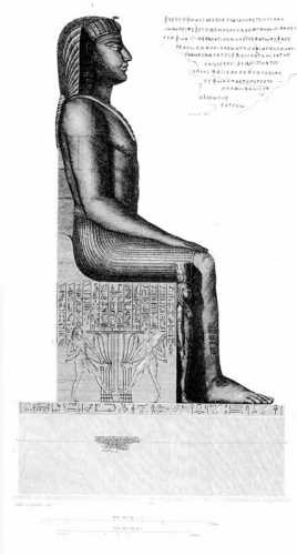 Еще раз всмотримся внимательнее в современную фотографию Колосса Мемнона, см. рис.19.44, и сравним ее с французским изображением на рис.19.121. Сразу бросается в глаза еще одно любопытное обстоятельство. Из рис.19.121 совершенно ясно видно, что в эпоху Наполеона по низу статуи шла длинная надпись, лентой охватывавшая статую со всех четырех сторон. Сегодня ничего этого здесь уже нет. Надпись кем-то сбита. Современная фотография, приведенная на рис.19.44, четко свидетельствует этот факт. Следовательно, памятники Египта продолжали целенаправленно разрушать и после Наполеона.