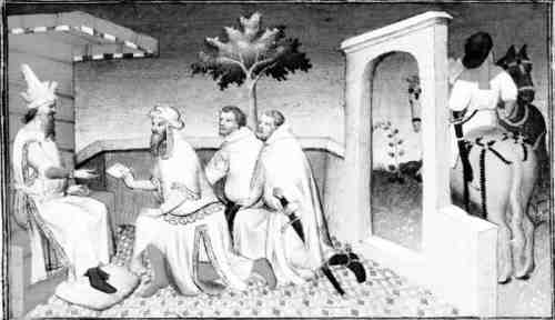 4) На рис.14.16 показан великий хан, принимающий письмо от папы.