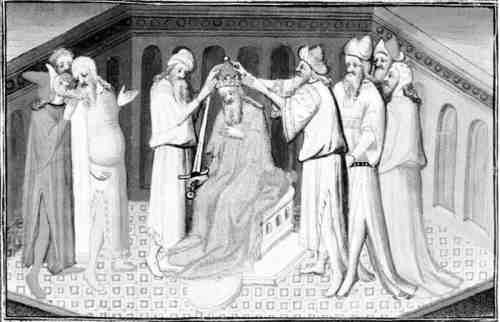 8) Венчание Чингиз-Хана на царство, рис.14.20. Изображено как венчание римского императора. По-видимому, так оно и было. Согласно нашей реконструкции, Чингиз-Хан должен был венчаться как император всей Империи. То есть как римский император.