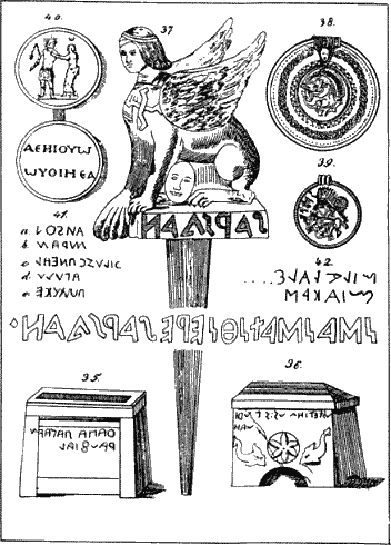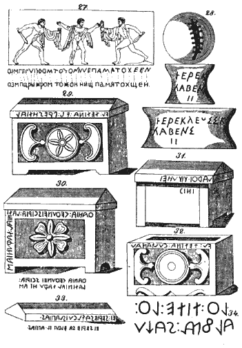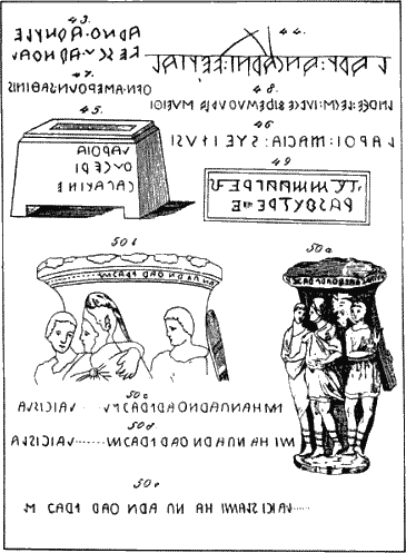 На рис.15.23, рис.15.24, рис.15.25, рис.15.26, рис.15.27, рис.15.28, рис.15.29, рис.15.30 показаны некоторые эт-русские надписи, собранные Ф. Воланским в [388].