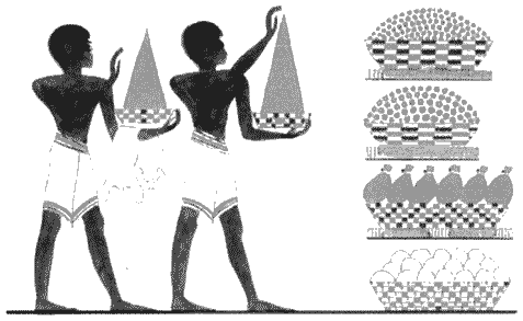«Эта настенная роспись показывает Нубийцев, приносящих дары и жертвенную еду, включая ладан, в священной форме пирамиды. Хлеб также иногда выпекался в виде пирамидальных хлебов… Пирамидионы, сделанные из камня, рассматривались как предметы, в которых живет бог солнца» [1360], с.45.