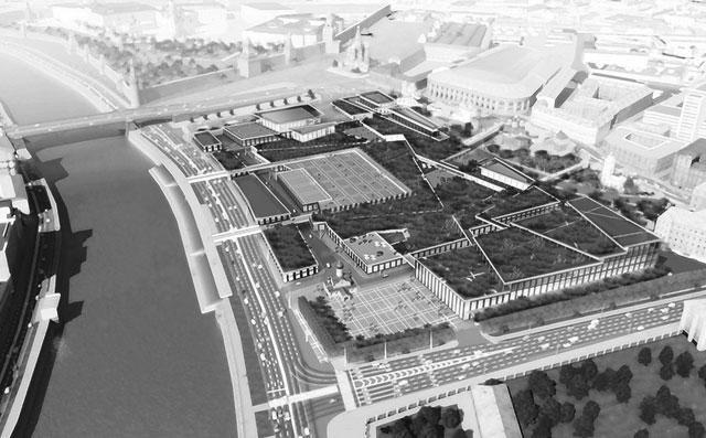 А уж сколько заимствований можно было встретить! Вот концертный зал — родной брат вокзала Ватерлоо в Лондоне, вот вдруг разбухший до размеров гигантского бройлера двуглавый орел. Кто-то предложил перекрыть все пространство огромным куполом — чтобы дождик не мочил гуляющих, другие разбросали по территории пасхальные яйца... Попытка равняться на Запад... Но как-то так сложилось, что еще ни одно копирование не вписывалось в нашу среду гармонично, без карикатурных надрывов. Западная городская культура всегда поражает своей естественностью, уместностью. Конкурсанты же, фантазируя, почти поголовно отвлеклись от главного — истории места, которое собрались осваивать. Проекты, хоть как-то учитывающие историческую трассировку улиц Зарядья, можно пересчитать по пальцам. В голову творцы не брали и то, что 30 процентов территории — охраняемая зона с археологическими артефактами (в полуметре от поверхности находится фундамент Китайгородской стены). Многие, увлекшись, начисто позабыли, что в техзадании фигурировала идея парка, набросав по всему Зарядью в изобилии офисные центры и торговые точки.