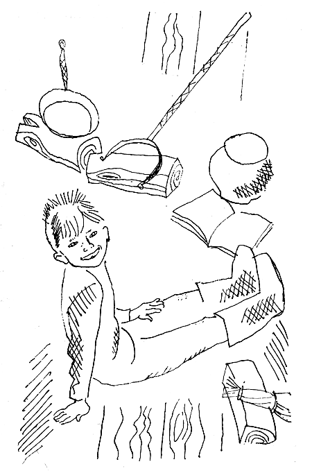 — А еще бабин башмак! — с увлечением закричал Шурка и кинулся в угол, извлек откуда-то старый, разношенный башмак. — Сколько много первоклассников — страсть!