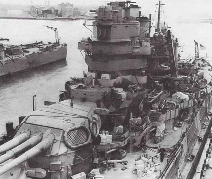 Модернизация линкора "Миссисипи" на верфи в Норфолке, январь 1942 г.