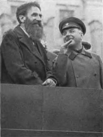 К. Е. Ворошилов и О. Ю. Шмидт на трибуне Мавзолея. 1934 г.