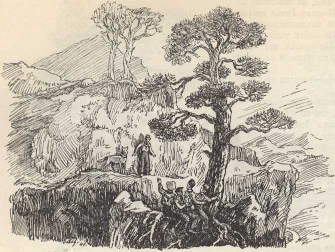 — Я вот что думаю, хлопцы, — сказал Егор, не обращая внимания на Ромку, — опуститься мы не сможем. Что если влезть на эту сосну, потом на ветку, а с ветки на площадку; там, вверху, видите, средние ветки уходят за верхний срез стены? Может быть, там вершина? Двадцать метров — и мы на горе…