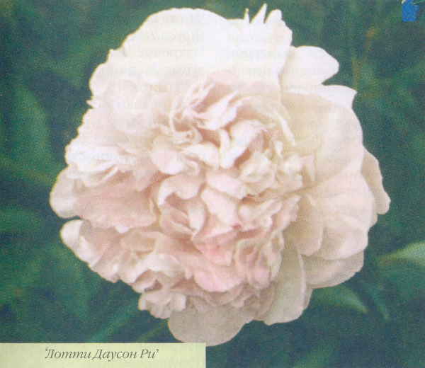 Цветок светло-кремово-розовый, компактный; лепестки гофрированные, изогнутые.