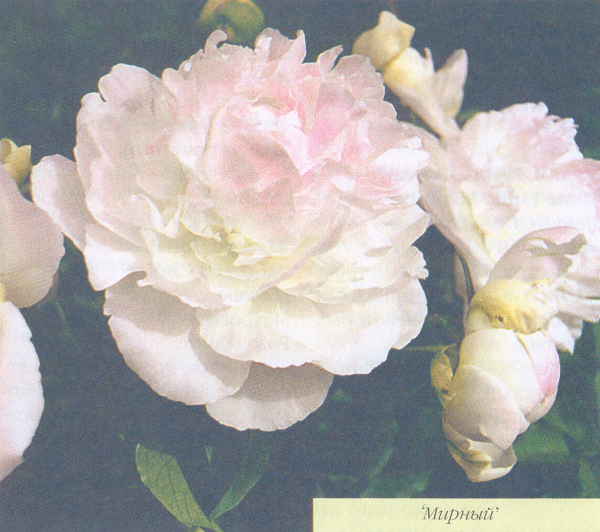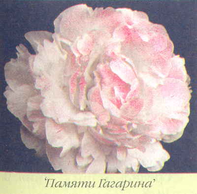 Цветок 14 см диаметром, белый, рыхлый. Наружные лепестки широкие, розовые, выгорают до белых, центральные узкие, кремовые.