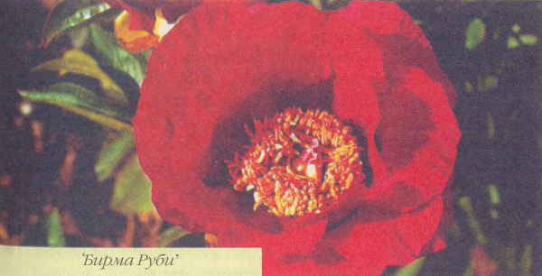 Цветок тёмно-красный. Стебли мощные, крупные.