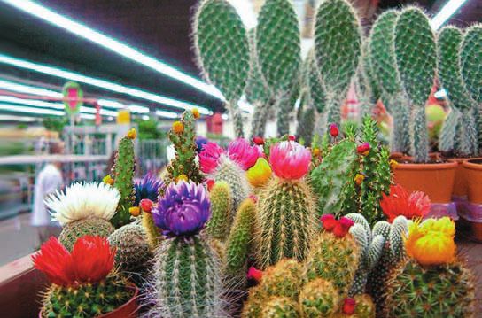 Если стебель кактуса зеленый, то есть не покрыт защитным одеянием колючек и волосков, о таком кактусе в подавляющем большинстве случаев можно думать как о любителе полутени. Если бы его предки жили на открытых солнцепеку местах, они наверняка обзавелись бы какими-либо защитными приспособлениями, хотя бы в виде серой, бурой, коричневой или лиловой окраски кожицы стебля. Яркость этой окраски, кстати, очень резко изменяется в зависимости от того, сколько солнечного света получает кактус: зимой или малосолнечным летом самые яркие оттенки стеблей блекнут, сменяясь приглушенно-зелеными тонами. Не располагайте такие растения вблизи стекол, перенесите их ближе к центру теплицы, притеняйте.