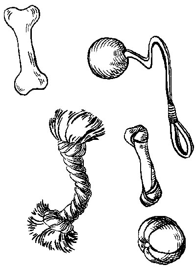 Как любому малышу, щенку понадобятся игрушки: мячики, пищалки, искусственные косточки, которые позволят в период роста зубов уберечь вашу мебель и вещи.