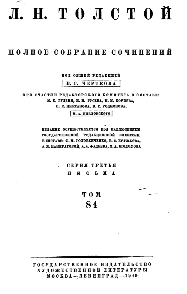 Полного собрания сочинений Л. Н. Толстого, предоставленной