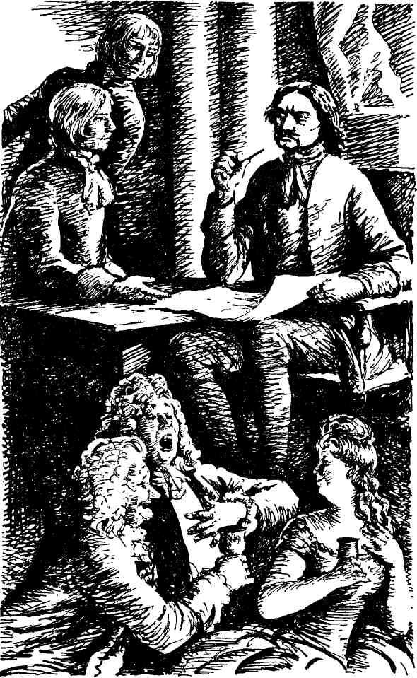 Петр бешено топнул, смял пакет в горсти: в ладонь уперлось что-то твердое. Царица, беседуя с Бармою, из-под прищуренных век следила за царственным супругом. Но вот тревожно вскинула бровь: в зал почти ворвался ее секретарь, волоча за собою Фишера. Забыв поклониться царице, кинулся к Юшкову.
