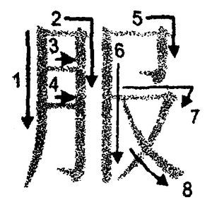 Попробуем более подробно разобрать кандзи «ФУКУ». Слева расположен элемент (месяц). В иероглифе это единственный символ из трёх (, , ), значение которого не вызывает у нас каких-либо сомнений. Вернее, пока не вызывает - японский язык не приемлет и не допускает какой-либо категоричности в обращении с ним, и как только в каком-то вопросе мы почувствуем себя более-менее уверенно, как тут же японский язык найдёт возможность обрушить мощный удар по нашей с вами самоуверенности. Так происходит и здесь. Все дело в том, что в наборе иероглифических ключей есть один, который выглядит совсем как «месяц» , но при этом к «месяцу» никакого отношения не имеет. Этот «пересмешник» - иероглиф «Мясо», который будучи иероглифом выглядит как , а вот в роли ключа тут же деформируется и превращается в нечто чрезвычайно похожее на «месяц» :