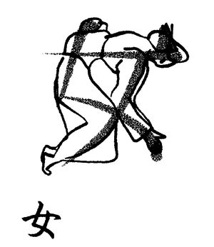 Смотря на кандзи , куда полезней не угадывать, что там было, а чего не было, а просто видеть то, что, собственно, в нём и изображено, а именно элементы (рот) и (останавливать). Только при этом желательно как-то суметь всё это связать с «ногой». Это, например, может быть выражение «волка ноги кормят» - прямая связь между процессом питания (рот) и способностью к передвижению как основной функции ног (останавливать бег ног). Или... Впрочем, как говорится, каждому своё, ибо каждый из нас несёт свой пласт культуры, уровень образования, степень образованности, интеллектуальные и художественные способности. Но самым, пожалуй, замечательным восприятием этой картинки поделился в своей книге Адиль Талышханов [430] : «Глядя на него (иероглиф ), я вспоминаю двухгодовалую дочку в маминых туфлях, в восхищении протягивающую руки к своему изображению в зеркале. Приглядитесь к иероглифу, «туфли» явно мамины, поскольку на высоких каблуках...».