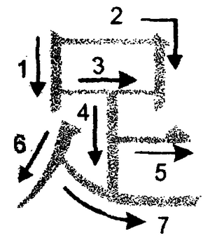 «Нога» состоит из двух кандзиподобных частей: (КО:_кути_рот) и (СИ_томэру_останавливать). Только вот какая связь может быть между ногами, ртом и остановкой? Какой изначальный смысл таится в столь хитроумном сочетании? В том-то и дело, что никакого! Но при сильно развитом воображении и значительной ассоциативной гибкости в графике иероглифа можно увидеть согнутую в колене ногу. Здесь знак символически изображает коленный сустав (а вовсе не «рот»), a - человеческую стопу. Когда-то в глубокой древности всё это было значительно больше похоже на согнутую в колене ногу, но неумолимое время сделало своё дело, придав тщательно выводимому рисунку условность схемы. Косвенным доказательством того, что в данном иероглифе ни о каком «рте» и ни о какой «остановке» речи никогда не велось, служит тот факт, что ключом этого иероглифа является не «рот», не «остановка», а сама «нога» .