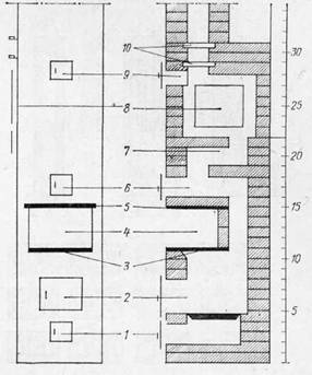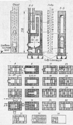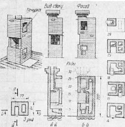 Рис. 17. Отопительная печь с тремя опускными каналами
