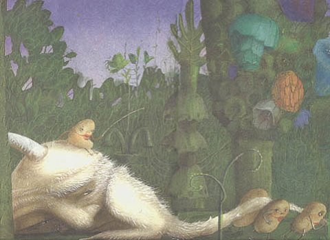 – Какое там, – махнул копытом белый, – озверели прямо. Уходи, говорят, от нас к своим зокам, не то закусаем. Неровен час, они и у нас заведутся. Вытащили меня из норы и назад сослали. Да. Только я ведь опять сбежал. Но на беду чемодан с собой взял. Я тот чемодан еще с вечера приготовил– вещички кой-какие, еду. Утром пораньше встал, чемодан в зубы и бежать. Целый день мчался без остановки и чемодан этот тяжеленный на себе тащил. Вечером открываю– покушать захотел перед сном, – а там зоки. Да не просто зоки, а с медом. Они, видишь, едой запаслись в путешествие, попутешествовать со мной захотели... А я-то целый день от них убегал, да еще их на себе тащил с этим ихним медом... тьфу! – разозлился бада.