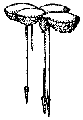 Из семейства рясковых на территории СССР обитает пять видов. Ряска трехдольная живет целиком погруженная в воду. Ряска трехдольная в условиях школы — хороший объект наблюдения (рис. 9). Интересны ее морфология, оригинальный способ вегетативного размножения, условия перезимовки в аквариуме, значение для других обитателей искусственного водоема. Остальные виды рясок живут на поверхности водоема, соприкасаясь, как с водой, так и с атмосферой: ряска малая размером всего 2 — 3 мм, ряска горбатая 5 — 6 мм, спироделла многокорневая и вольфия бескорневая — 1,5 мм.