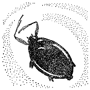 Одно из интересных приспособлений — глаза жучков. Живут вертячки на границе двух сред — воздуха и воды. Соответственно этому каждый глаз перегорожен хитиновой полоской на две части. Эта разделяющая полоса располагается на уровне поверхности воды. Можно дополнительно сообщить учащимся, что в тропиках природа повторила этот прием у рыб: приповерхностная рыба четырехглазка имеет горизонтальное разделение каждого глаза, хотя у нее, естественно, не фасеточные глаза, как у жуков. Вертячки также при помощи усиков воспринимают распространяющиеся на поверхности воды волны, создаваемые различными организмами, и посылают свои, улавливая их эхо от предметов и живых существ. На экскурсии, заметив заводь, где плавают вертячки, коснитесь рукой воды где-нибудь в стороне, за кустами: вертячки мигом ныряют на 3 — 5 мин.
