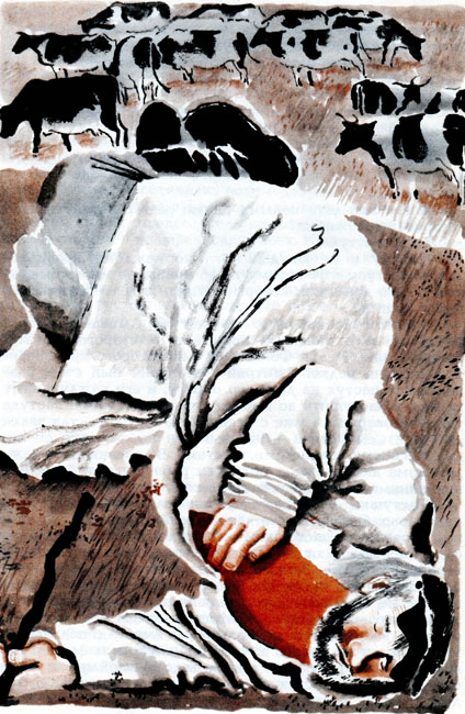 Хозяйки сразу узнавали, когда пастух плохо кормил скотину: не дадут коровы молока — пастух не двигался по лугу, проспал возле стада. Вечером ему выговор. Дед Митрий исправлялся, а другой, Маноха, — тот чем больше его ругали, тем он настойчивее морил коров. И налаживал пастьбу только после строгого предупреждения мужиков, обещавших его побить.