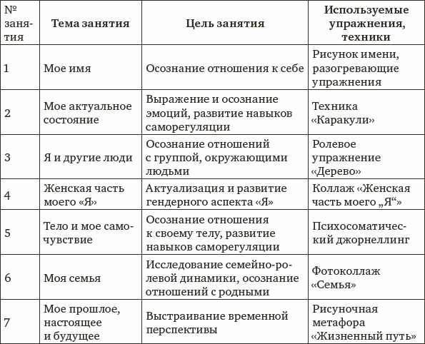 Таблица 1. Тематический план групповых арт-терапевтических занятий