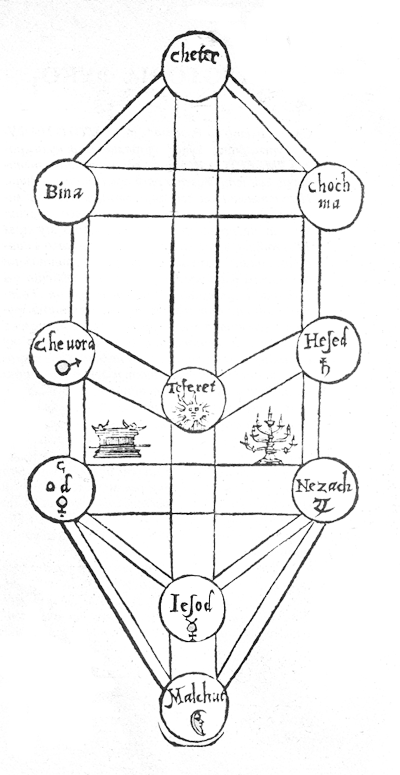 Кетер, първата от десетте сефири (Кетер — Корона или Венец, Хохма — Мъдрост, Бина — Градеж или Разум, Хесед — Добродетел или Милосърдие, Гевура — Храброст или Сила, Тиферет — Красота или Разкош, Нецах — Победа или Тържество, Од — Слава или Тайнство, Йесод — Основа, и Малхут — Царство). Сефири (чистите числа), основни инструменти на кабалистиката, са десетте аспекта на Единичното, които, наред с двадесет и двете свещени букви от еврейската азбука, образуват тридесет и двете пътеки на тайнството, по които Бог е сътворил света, според свещеното еврейско писание „Сефер Йецира“, „Книга на Творението“.