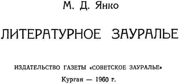 В прошлом Зауралье было мало заметным на литературной карте России. Известно, что царизм, беспощадно душивший всякую живую мысль, сдерживал развитие передовой литературы. До первой русской революции в крае отсутствовала периодическая печать. Недремлющая царская цензура всячески затрудняла деятельность прогрессивных писателей Зауралья. Поэтому многое из литературных начинаний прошлого для нас погибло безвозвратно. Однако имена нескольких писателей, связанных своей жизнью или творчеством с Зауральем, сохранились. Знакомство с их жизнью и произведениями представляет определенный интерес и для современного читателя.