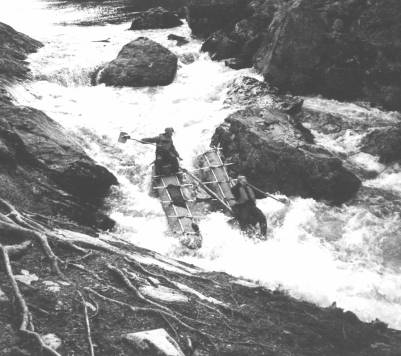 Такую картину мы наблюдали на пороге Двойной Прыжок реки Кутсайоки. Чей-то древний катамаран, на скорости соскочив с маловодного слива, воткнулся носами в камни. Ветхая шкура лопнула на обоих носах сразу – и на свет Божий вывалились восемь кишок! Так и поплыли: люди отдельно, кишки отдельно.