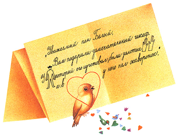 «Уважаемый пан Белый, Вам подарили замечательный шкаф. У мастера, который его изготовил, были золотые руки, а в сердце у него пел жаворонок».