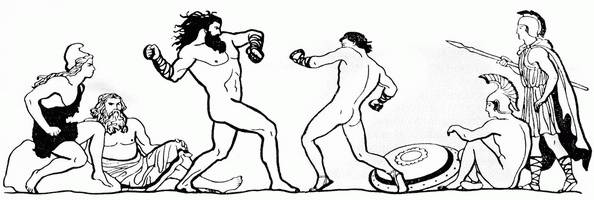 Но Полидевк увернулся вовремя и ударил легонько противника в живот.