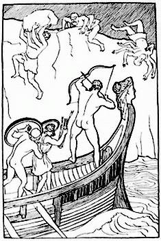 Смутно стало на сердце у аргонавтов после злой шутки, которую сыграл с ними ветер. В молчании выполнял каждый свою дневную работу; не слышно было на корабле ни смеха, ни шуток, ни рассказов бывалых моряков. И Орфей не пел больше песен.