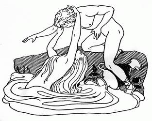 Мальчик испугался, поскорее хотел зачерпнуть воды кувшином, нагнулся, и в тот же миг две тонкие руки высунулись из воды, обняли его крепко за шею и потянули за собой. Выронив кувшин, с жалобным криком погрузился Гилас в воду.