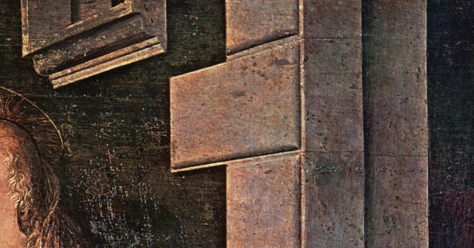 Казалось бы, кто будет обращать внимание на случайные каверны в стенах и на шелушение оконного обрамления, ведь мы и в реальности-то пропускаем такие вещи мимо глаз, а Леонардо не поленился выписать каждую щербинку и очерком, и светотенью, и с учетом перспективы!