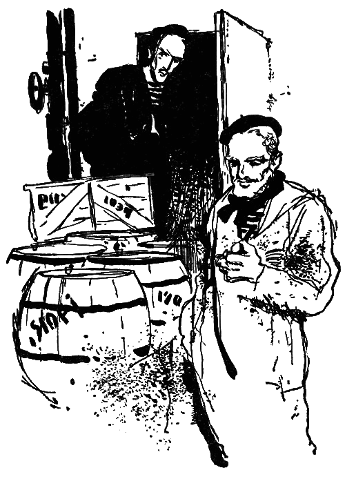 Вот и теперь старый матрос решил взять под свою защиту ребят. Но надо же было случиться, чтобы как раз в этот момент мимо отсека проходил тот самый матрос, который выбросил его щенка за борт. Что это за человек, говорил его вид — черные сросшиеся брови, широко поставленные глаза, огромные кулаки. Услышав голоса, он остановился и стал незаметно подсматривать. Он хорошо знал причуды Деда и все же не мог сдержать удивления, увидав его в компании двух ребят. Сначала канарейка, потом котенок, щенок, а сейчас вот дети… Значит, старик ослушался строжайшего приказа капитана, взял на борт «зайцев»?