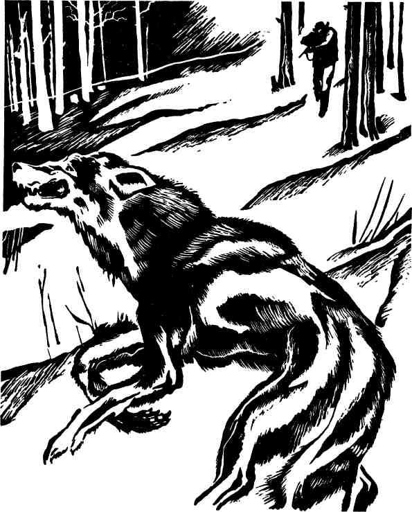 Уже после двух передышек Матерому показалось, что кто-то его преследует. В задымленном воздухе носились едва уловимые чужие запахи, и вначале Матерый старался не замечать их — они могли и померещиться. И только когда посветлело впереди — близок был пожар, — Матерый понял, что ему не чудится. Справа и слева, держась шагах в пятнадцати от чернотропа, скользили меж деревьев длинные тени. Матерый не испугался. Делая вид, будто ничего не видит, продолжал двигаться к охваченному огнем ельнику.