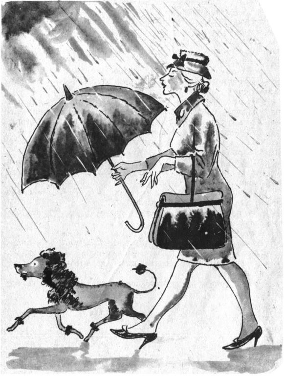 Потом на улице появилась дама. Прямая, длинная, она хладнокровно вышагивала под дождём, а свой зонт держала над пуделем, изящно обритым от хвоста до талии.