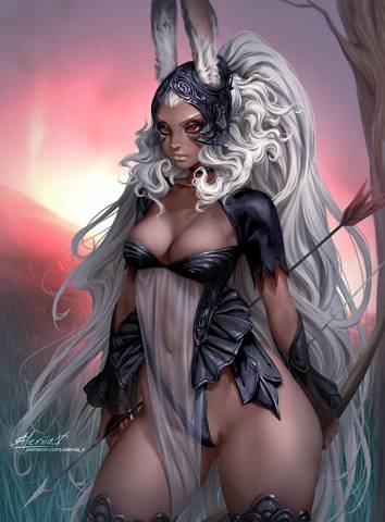 Сжав булки, чтобы из моей упругой попки не высыпались остатки храбрости, я, стараясь не издавать лишних звуков, настороженно выглянула из-за колеса. Ого! Ой-е! Фу, блин! Меня буквально захватил водоворот смешанных и противоречивых эмоций, начиная от изумления и заканчивая тошнотворным отвращением. В метре от клетки стояла девушка с луком в руке. Откровенный наряд едва скрывал загорелое подтянутое тело. Длинные белоснежные волосы эффектно контрастировали со смуглой кожей. Но больше всего меня впечатлили яркие алые глаза, которые добавляли облику некоторой жутковатости, особенно в купе с окровавленными пухлыми губами. Так это она что ли последнего орка схарчила?! Кошмар! И вот в эту вот строгую красоту с налетом кровожадности, совершенно не вписывались длинные заячьи уши… Могучих толстохеров разбрызгала по полянке… зайка?! Серьезно?! Да вы гоните!