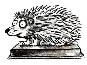 И конечно, приземлился на Колючку — чучело настоящего ежа, которое сделала миссис Ворчунья.