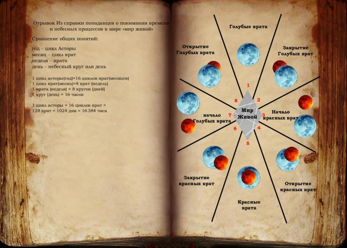 Мне, кстати пришлось помучиться с пониманием этого зубодробительного календаря. И я для себя округлил примерное время в сравнении со временем моего мира и получилось, что по часам цикл Асторы почти в два раза превосходит наш год. Да, дней цикле у них тысяча двадцать четыре, но часов в сутках всего шестнадцать. Итого, сто сорок циклов это плюс-минус двести восемьдесят лет, что очень много.