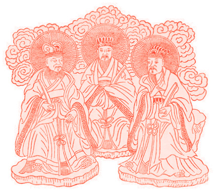 Первый из Трех чистых, или Трех божественных учителей, — это Юаньши тяньцзунь («Изначальный, Почитаемый на Небе», также известный как Юйцин («Нефритовый Чистый»). Предположительно он учил Лао-цзы, который является третьим из чистейших и известен как Тайшан лаоцзюнь, или Тайцин («Великий Чистый»). Второй — Шанцин («Высший Чистый») — это Тайшан Даоцзюнь («Великий Господин Дао»), который, как предполагается, знает все, что известно о Дао. Каждое из этих божеств правило одной из небесных сфер и проявляло определенную форму изначальной энергии ци. Они господствовали в ранней даосской религии, но их присутствие стало менее заметно после появления императора, который был высочайшим из людей, возможно, они сохраняли свои позиции до того, как стало известно деление на высших и низших, характерное для имперского периода [21] .